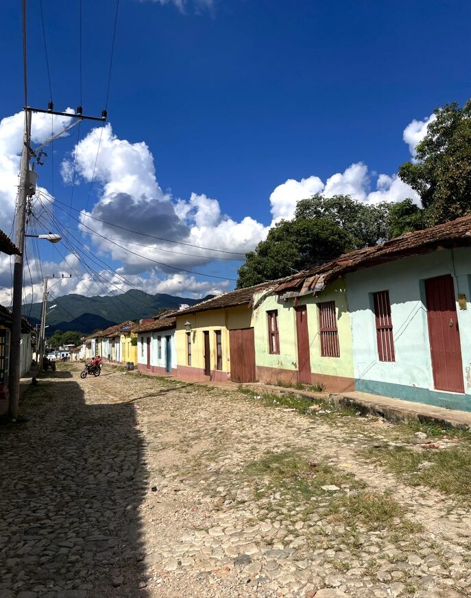 Vi ankom til Trinidad. Smalle brostensgader, farverige huse, sol og gåben. Vi jagtede det perfekte udsigtspunkt (fandt det ikke), men fandt ro på casaets tagterrasse i hængekøjerne. Her læste vi bog og koblede af. Aftensmaden blev desværre en turistfælde, og byen var mere stille end forventet – måske på grund af lavsæson og de mange strømafbrydelser, som hærger Cuba i øjeblikket.