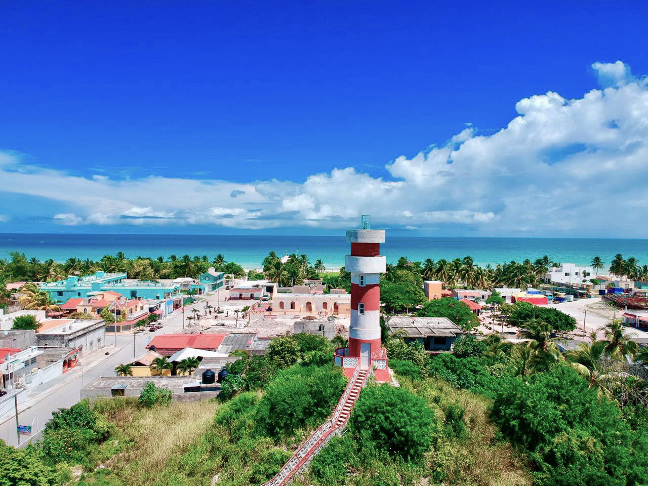 Det er en lille farvestrålende fiskerby på Yucatáns nordkyst, hvor roen næsten sætter sig i kroppen, så snart du triller ind ad de sandede gader. Det ligger kun et par timers kørsel fra Cancun, men man skulle tro, det lå meget længere væk.